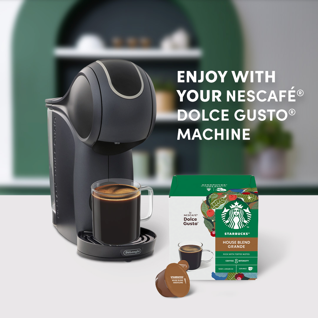 หนึ่งกล่องประกอบไปด้วยแคปซูล สตาร์บัคส์ เนสกาแฟ ดอลเช่ กุสโต้ เฮาส์ เบลนด์ อเมริกาโน่ ที่ออกแบบมาสำหรับเครื่องชงกาแฟแคปซูล NESCAFÉ® Dolce Gusto® 12 แคปซูล - ชงได้ทั้งหมด 12 แก้ว